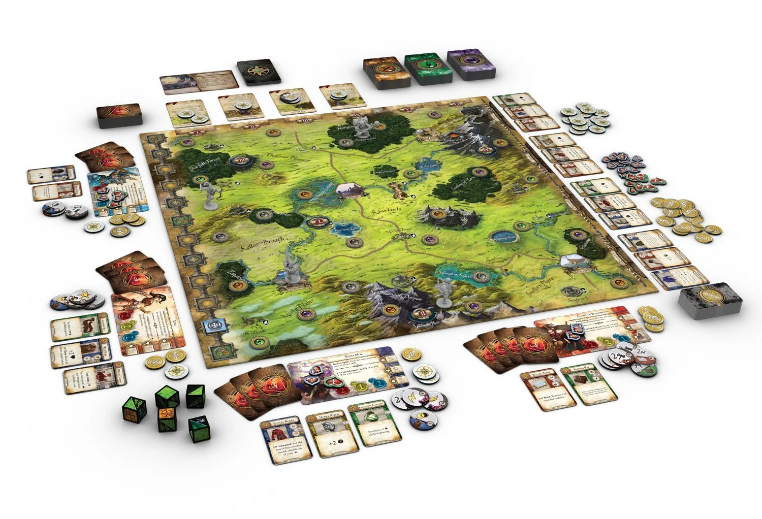 Welcome to Terrinoth, adventurer! Runebound is a fantasy adventure board game for two to four players, inviting you to play as one of six heroes wandering the realm and taking whatever quests you may encounter. But all is not well in the realm: evil is awakening once more in the form of Margath the Dragonlord or the Corpse King, Vorakesh. Only you and your rival heroes stand a chance of stopping this threat before all Terrinoth is consumed in darkness.